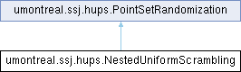 This PointSetRandomization class provides the nested uniform scrambling (NUS) randomization proposed by Owen ([185], [189]) for digital nets. More...