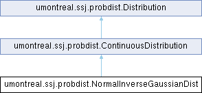 Extends the class ContinuousDistribution for the normal inverse gaussian distribution with location parameter \(\mu\), scale parameter. More...